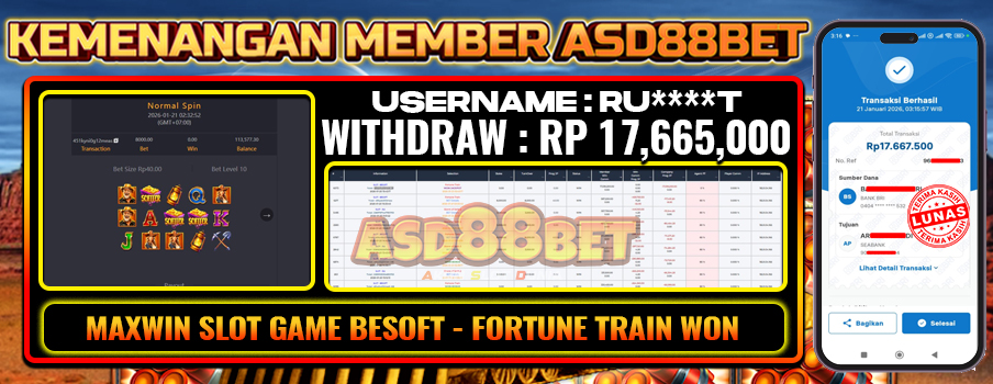 BUKTI NYATA! MEMBER ASD88BET BERHASIL RAIH MAXWIN BESOFT – FORTUNE TRAIN WON! 21 JANUARY 2026