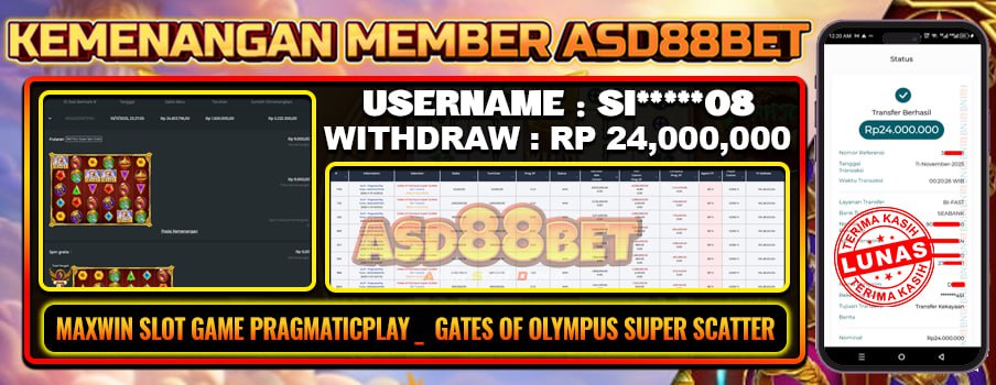 Kemenangan luar biasa ini jadi bukti bahwa di ASD88BET, keberuntungan nyata bukan sekadar harapan—melainkan kenyataan yang bisa kamu raih!