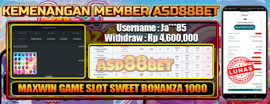 BUKTI NYATA! MEMBER ASD88BET BERHASIL RAIH MAXWIN SWEET BONANZA 1000! 15 OCTOBER 2025