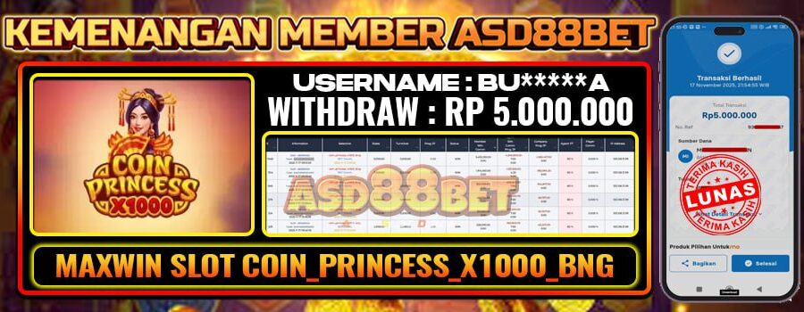 BUKTI NYATA! MEMBER ASD88BET BERHASIL RAIH MAXWIN COIN_PRINCESS_X1000_BNG! 17 NOVEMBER 2025