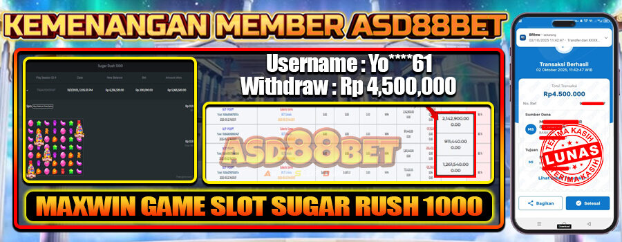 BUKTI NYATA! MEMBER ASD88BET BERHASIL RAIH MAXWIN SLOT SUGAR RUSH 1000! 02 OCTOBER 2025