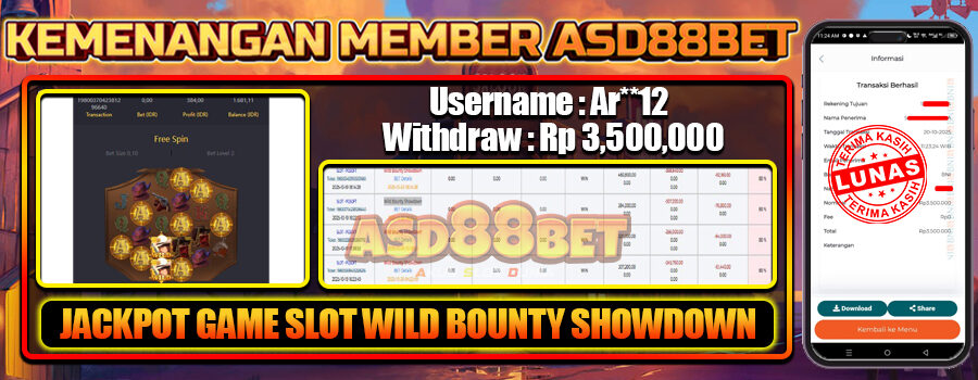 BUKTI NYATA! MEMBER ASD88BET BERHASIL RAIH JACKPOT GAME SLOT WILD BOUNTY SHOWDOWN! 21 OCTOBER 2025